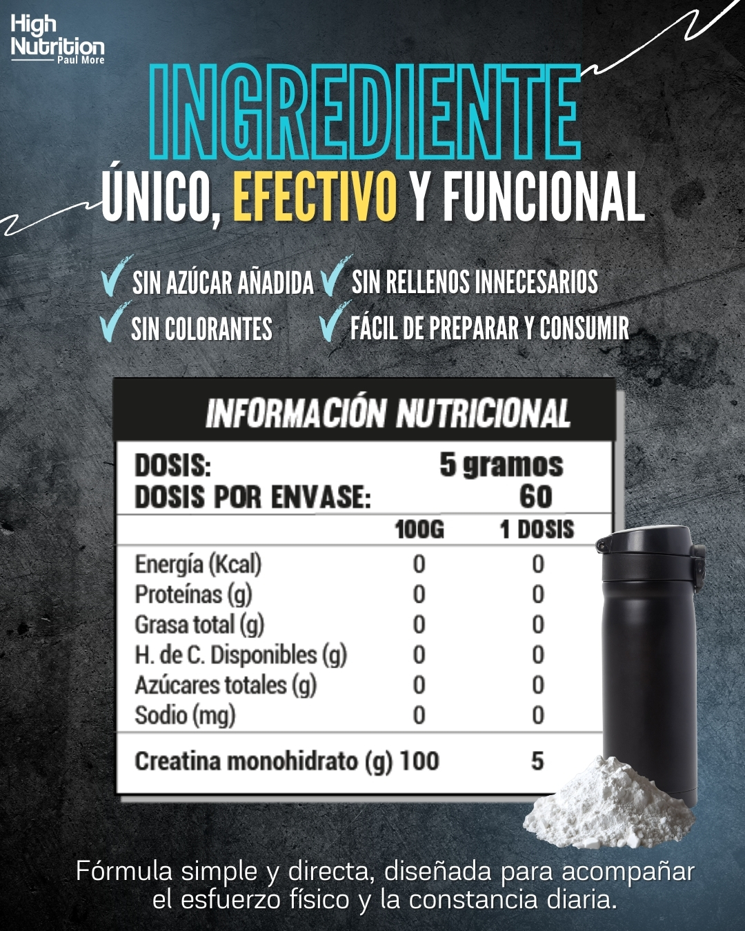 • Estabilidad y pureza: La forma monohidratada de la creatina es muy estable y pura, lo que significa que el cuerpo puede absorberla y utilizarla eficientemente.